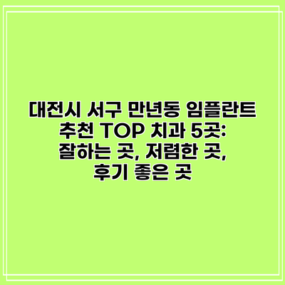대전시 서구 만년동은 임플란트를 받고자 하는 환자들에게 다양한 선택지를 제공합니다. 대전 지역 내에서 신뢰할 수 있고 전문적인 임플란트 치료를 제공하는 치과들을 찾는다면 여러 고민을 하게 될 것입니다. 이 글에서는 만년동에서 추천하는 TOP 치과 5곳에 대해 소개하겠습니다.