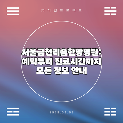 서울금천리솜한방병원: 예약부터 진료시간까지 모든 정보 안내