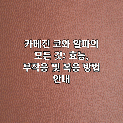 Q2: 카베진 코와 알파의 복용 방법은 어떻게 되나요?